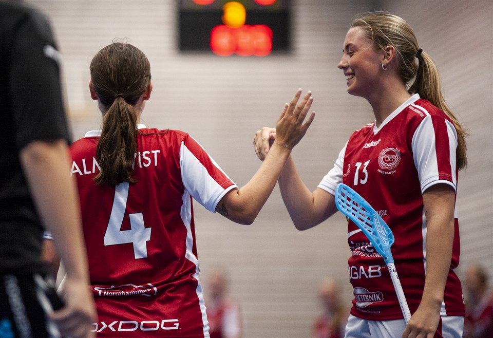 Hovslätt Dam säkrade på söndagens eftermiddag vidare avancemang i Smålandscupen när man besegrade Husqvarna IK i Huskvarna Sporthall med 4-1. Kaffe kaka brukar det heta och efter söndagens tuffa bortamöte i Smålandscupen för våra damer mot Husqvarna IK, kan vi bekräfta uttrycket. Efter en mållös första period och en fantastisk andra akt där man gick fram till 4-1, behöll man sedan sitt spel i den tredje perioden och kunde vinna komfortabelt. Därmed tog Hovslätt Dam sin andra raka vinst i Smålandscupen och säkrade vidare avancemang. Tränare Frida Ingvarsson summerar: - Tack, först och främst kul med avancemang och roligt att vara igång med tävlingsmatcher. Vi tar med oss mycket lärdom från dagen, roligt med en fysisk match där vi bland annat fick träna på att det är vi som ska föra tempot. Men. framförallt tycker jag tjejerna har gjort det fantastiskt. Vi börjar få saker att falla på plats och tar små kliv i rätt riktning hela tiden. Vi gratulerar Hovslätt Dam till avancemanget. Foto: Marcus Vilson
