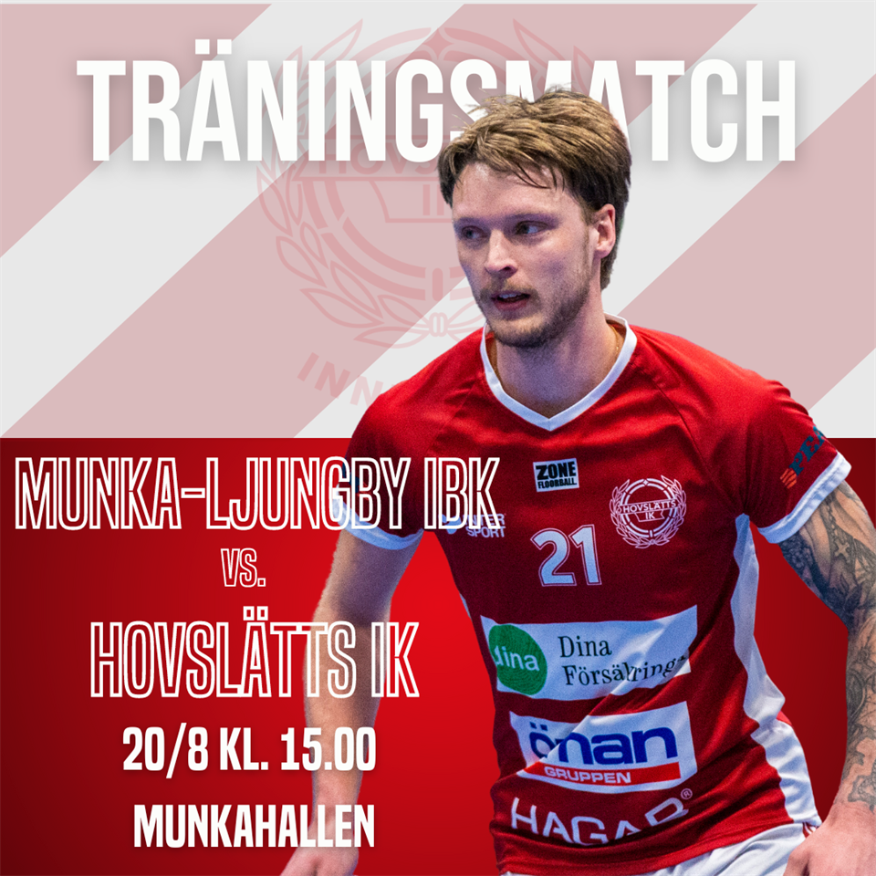 Det blev en komfortabel vinst för herrarna när man besegrade Munka-Ljungby IBK med 8-4 i Munkahallen under lördagen. Äntligen är matchandet för våra herrar igång igen och under lördagseftermiddagen var det dags för säsongens första träningsmatch där Munka-Ljungby IBK stod för motståndet. Hovslätt Herr gästade skånelaget i den första av två träningsmatcher under helgens roadtrip och det slutade med en komfortabel vinst (8-4). Tränare Max Gustafsson summerar matchen kort: - En första träningsmatch där vi får väldigt många bra svar spelmässigt, men också på de saker vi behöver göra bättre.I den höga pressen behöver vi titta på ite saker för att hitta bättre svar. Anfallsspelet kändes bra i den här fasen av försäsongen. David Andersson startade idag och gjorde en bra match i målet, vi hade tre 06:or med i laget som gjorde det riktigt bra, Hugo Olsson, Emil Karlsson och Sebastian Sjökvist. Dessa tre får jätterstora hyllningar. Dessutom var det första matchen för Albin Rommeskog, vilket är väldigt roligt. Både för oss, men framför allt för honom. Kul för lillen att komma tillbaka med och båda dessa gör en riktigt bra match. Det är kul att vara igång igen och det ska bli kul att få mäta oss med Helsingborg imorgon. Men först ska vi åka ut och äta och ha en fantastiskt trevlig kväll med laget och sedan ladda inför morgondagens batalj.