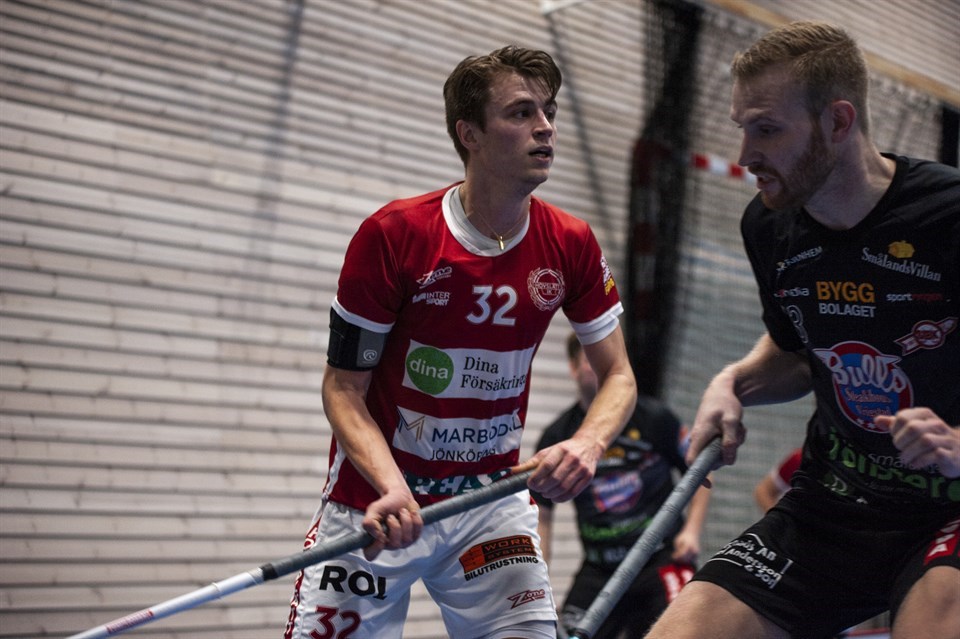 Herrlagets lagkapten Fridolf Persson har nu skrivit på ett nytt kontrakt med Hovslätts IK. Mycket glädjande att Fritte som är inne på sin sjunde säsong i klubben varav de tre sista som lagkapten vill vara med på lagets fortsatta resa. Vi tog oss en pratstund med Fritte. Hur har du resonerat kring fortsättningen Fritte? Detta året var ju de sista. Tanken var att detta skulle vara sista säsongen men jag tycker det fortfarande är väldigt roligt, så efter att ha funderat ett tag och pratat igenom allt med min sambo så kändes det självklart att köra ett år till. Vad var det som tillslut gjorde att du valde att köra på? Framförallt att det är fortfarande är roligt men också utvecklingen av laget, truppen och föreningen och känslan av vad vi kan åstadkomma framöver. Vi är ett väldigt ungt lag bortsett från mig själv med många ”supertalanger” som bara kommer att bli bättre. Du nämner känslan att vi är påväg mot något, kan du precisera den lite mer? Som sagt med en så pass ung stomme som tagit stort ansvar denna säsong så vill jag gärna vara med och se om vi kan fortsätta ta kliv över nästa också. Om vi fortsätter att ta vara på våra duktiga ungdomar och juniorer så kommer Hovslätt att ha en bra grund under en längre tid. Du leder lagets interna +/- statistik, vad tror du är anledningen? Jag antar att jag har förmånen att spela med bra och produktiva spelare framåt, jag själv är ju ingen poängmaskin utan känner mig mer bekväm längre bak i banan. Jag tror att min fysik spelar in lite iaf, att man orkar hålla fokus och ha rätt position även om du varit inne ett längre byte. Din fysik är en anledning säger du, hur har du jobbat fram den genom åren? Jag har ju en bra grund ifrån längdskidåkningen i yngre dagar, sen har jag aldrig haft den talang som många andra i laget utan varit tvungen att kompensera med en bra fysik. Kvalplatsen säkrad med 2 omgångar kvar, hur ser de kommande veckorna ut? Nu ska vi först avklara de sista seriematcherna och försöka bygga upp en bra känsla i laget, sen inför kvalet så gäller det att bara hålla högt fokus på de träningarna som är kvar och verkligen skapa oss själva förutsättningar att prestera så bra som möjligt. Du fyller 30 år i år, det rycktas om att du ska göra en Ironman, är det 30 års krisen? Jag anmälde mig till den när jag bestämde att detta skulle vara sista innebandysäsongen men så blev det ju inte nu ändå. Det ska bli en rolig utmaning men ingen 30 års kris än hoppas jag iaf 😊 Vi tackar Fritte för pratstunden glädjer oss åt hans fortsättning och önskar lycka till i kvalet till Allsvenskan. Foto: Marcus Vilson