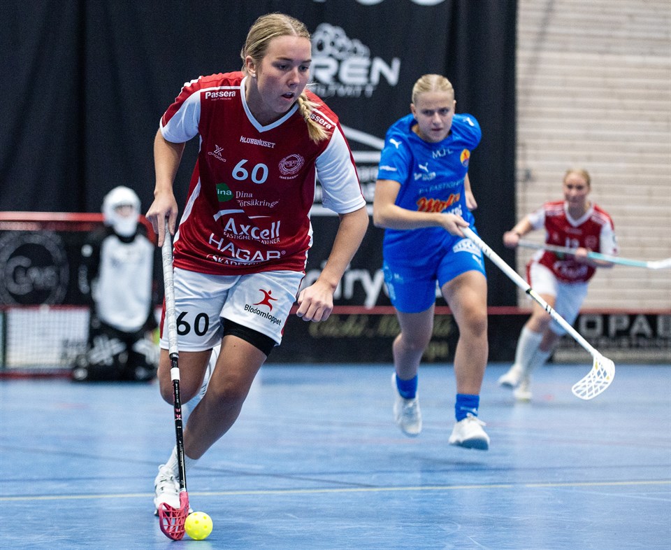 Hovslätt dam spelade under lördagseftermiddagen oavgjort mot CL98IC hemma i A-Hallen i en riktigt tuff och tät match där siffrorna till slut skrevs till 5-5. Vårt damlag fick med sig en poäng i det tuffa mötet med CL 98IC där hemmalaget startade piggast och tog ledningen efter ca sex minuters spel genom Felicia Nyström. Spelet böljade fram och tillbaka, men till slut skulle Olivia Jonsson helt fristående styra in 2-0 fem minuter senare. Båda lagen spelade ett intensivt och fysiskt spel och stundtals kändes gästerna hetare i sitt agerande. Även om båda lagen skapade en del möjligheter. CL98IC reducerade efter 13 minuters spel och det var också resultatet efter den första perioden. I den andra perioden ökade Viktoria Hornbrink på till 3-1 innan gästerna åter reducerade till 3-2. men nummer 91 i hemmalaget var inte färdig där. Efter ett samspel med Alicia Forsström kom så Viktorias andra mål för dagen som betydde 4-2. Men, efter en press av CL98IC skulle återigen en ny reducering komma med bara 19 sekunder av mellanakten. Vi hade 4-3 på tavlan. Sju minuter in i den tredje akten kvitterade gästerna och vi hade en nervkittlare på gång. Båda lagen höjde tempot ytterligare och skapade en del möjligheter. Men, det var två duktiga målvakter och vilt kämpande försvar som lyckades att hålla målen utanför. Till slut skulle ett ledningsmål komma och frågan är om det inte var matchens individuella prestation. Alicia Forsström tog bollen från den egna planhalvan och rundade sin bevakare innan hon snyggt lurade gästernas målvakt. Målet kom med endast 2.36 kvar av perioden. Men, som vi alla vet, så går det ibland alldeles för fort i innebandy och bara 32 sekunder kom så också en kvittering. Vi hade en förlängning att vänta. Förlängningen blev mållös, men inte chanslös och lagen fick dela på poängen. Närmast väntar ett stekhett derby hemma i A-Hallen den 28 oktober kl. 14.30 mot Husqvarna IK, där bland annat forne Hovslätt Damtränaren Frida Ingvarsson numera är tränare. Så se till att boka in matchen i kalendern och kom och stötta våra damer till en tre poäng. (Foto: Marcus Vilson / Hovslätt Media)