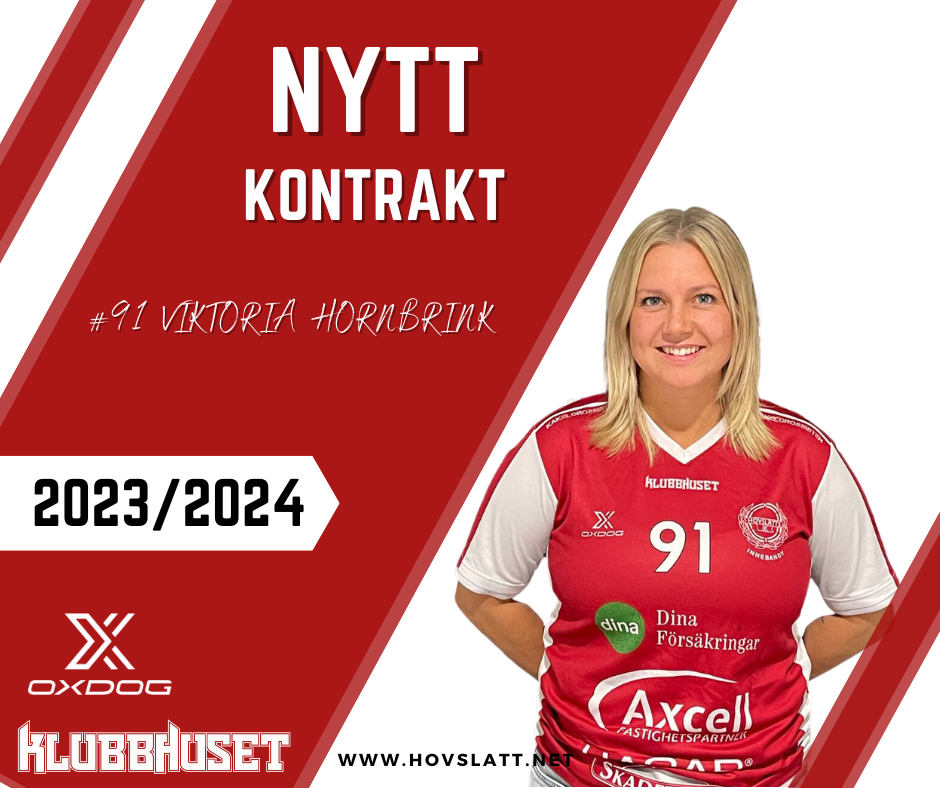 Lagbygget för kommande säsong pågår för fullt för Hovslätt Dam och man kan nu meddela att rutinerade Viktoria Hornbrink valt att fortsätta karriären i Hovslätt. Viktoria Hornbrink har valt att skriva på för kommande säsong och därmed går hon in på sin fjärde säsong i klubben. Viktoria drogs under delar av föregående säsong med skador, som gjorde att hon stundtals var borta från spel. Men, 19 matcher och totalt 14 poäng (7+7) hann hon med under säsongen. Viktoria själv är revanschsugen och säger; - Det är ett fantastiskt lag och gäng som gör att jag vill fortsätta i Hovslätt. Jag har inte kunnat spela ordentligt sedan jag åkte på hjärnskakningen för ett år sedan. Det tog lång tid att komma tillbaka och sedan åkte jag på en fotskada. Jag är därför extremt taggad på en säsong där jag förhoppningsvis bara kan köra på och njuta av innebandy i en röd/vit tröja. Kontraktet är skrivet över säsongen 2023/24.