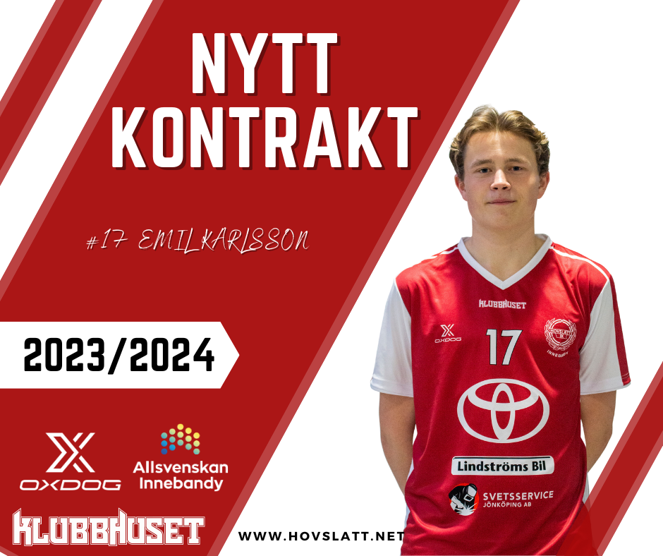 Ännu en av våra talanger flyttas nu upp till herrlaget från JAS, Emil Karlsson, 17. - Jag kommer att försöka kriga om en plats, säger Emil Karlsson. Emil Karlsson har Mullsjö AIS som moderklubb, men kom till Hovslätts IK inför säsongen 2021/22 och när han nu går in på sin tredje säsong i föreningen, tar han samtidigt steget upp till A-Laget och spel i Allsvenskan. Emil stod under fjolårssäsongen för en stark prestation och med 88 poäng på 60 matcher fördelat på 29 mål och 59 assists, flyttas han nu upp till Hovslätts herrlag. Emil har dock redan testat på spel i Allsvenskan med Hovslätt under tre matcher med 1 assist som poäng, så han är inte helt främmande för hur det är att spela på högre nivå. Själv säger den unge talangen om uppflyttningen och förväntningarna; - Det ska bli riktigt kul att få komma upp i A-laget och mina förväntningar inför säsongen är att få utvecklas än mer som innebandyspelare och bli bättre. Framför allt kommer jag att kriga om att försöka ta en plats, säger Emil om uppflyttningen. Emil kommer att spela med tröja nummer 17.